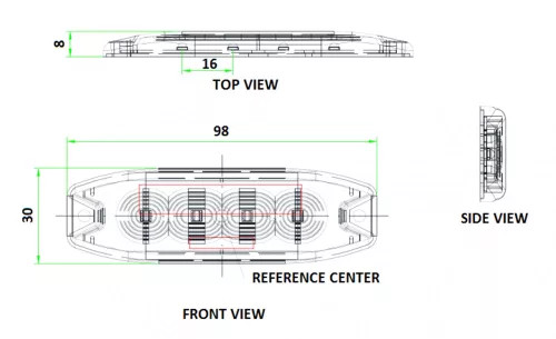 Beépíthető 4 POWER Led-es sárga villogó modul 12/24V 100x30x9mm
