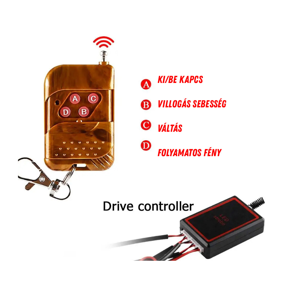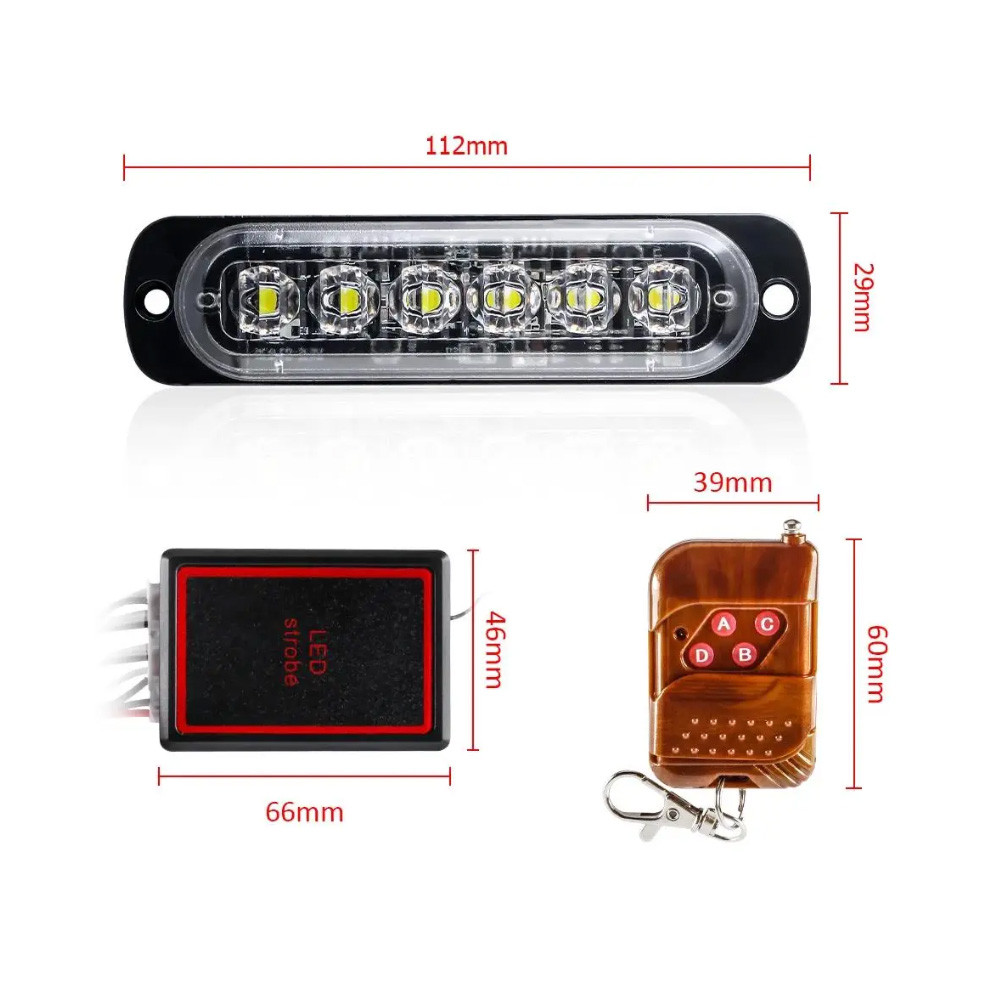 Beépíthető 6Led-es 19funkciós Borostyánsárga villogó modul SZETT, távírányítóval3vezérlővel 12V