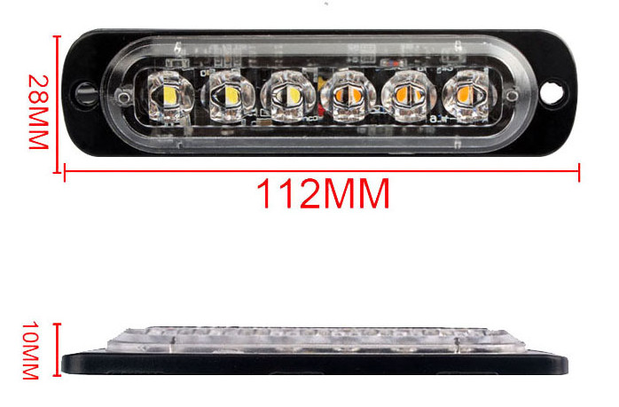 Beépíthető 6Led-es 6funkciós PIROS villogó modul 12/24V 112x29x13mm