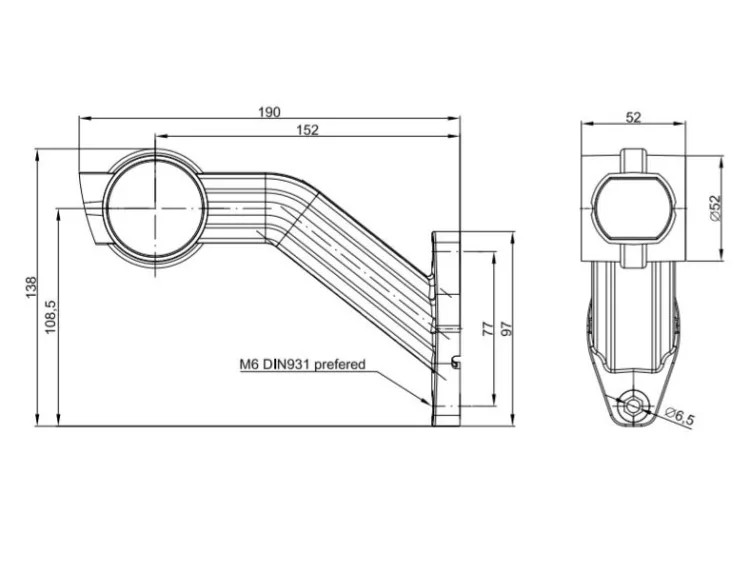 Gumilámpa LED Piros-Fehér-Sárga hosszú JOBB 12/24V 190mm kinyúlás FRISTOM