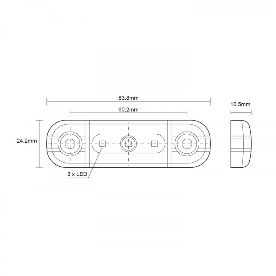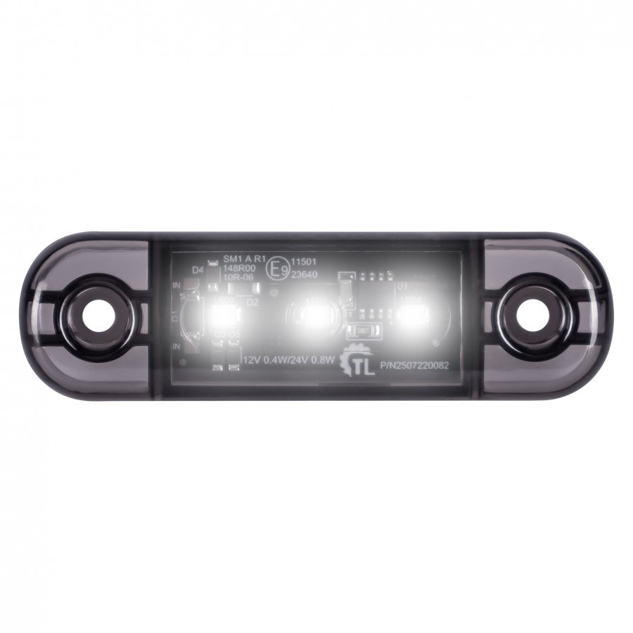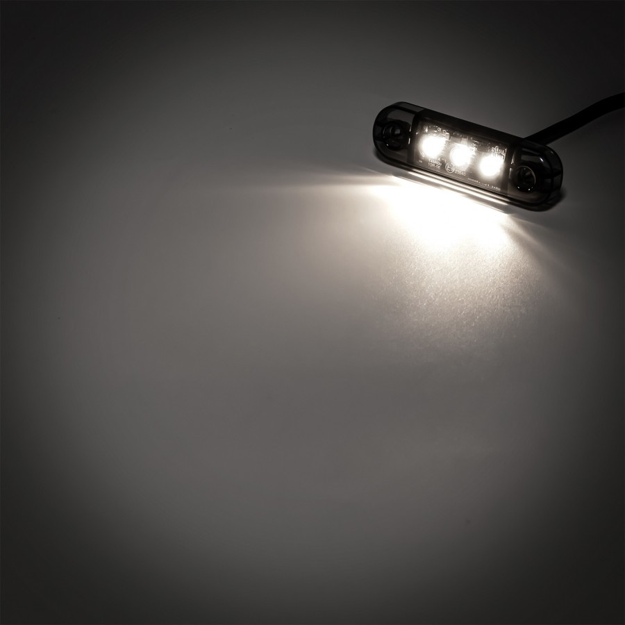 Helyzetjelző 3Led-es Fehér Füst Búrával 12/24V 84x24mm