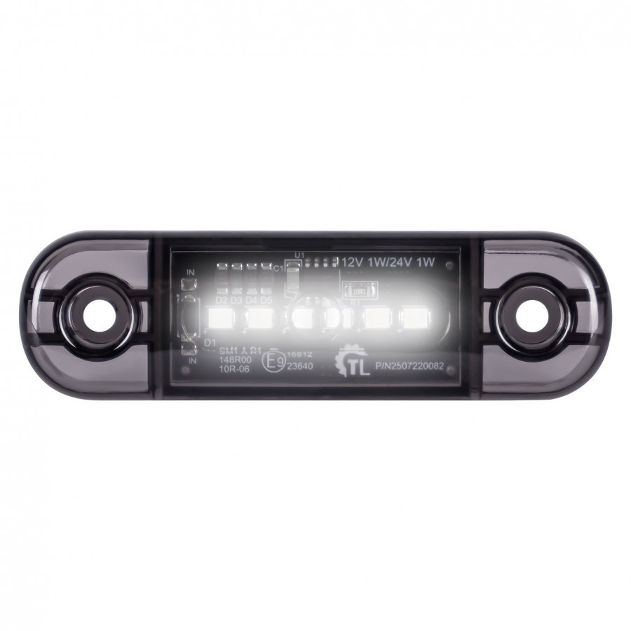 Helyzetjelző 6Led-es Fehér Füst Búrával 12/24V 84x24mm