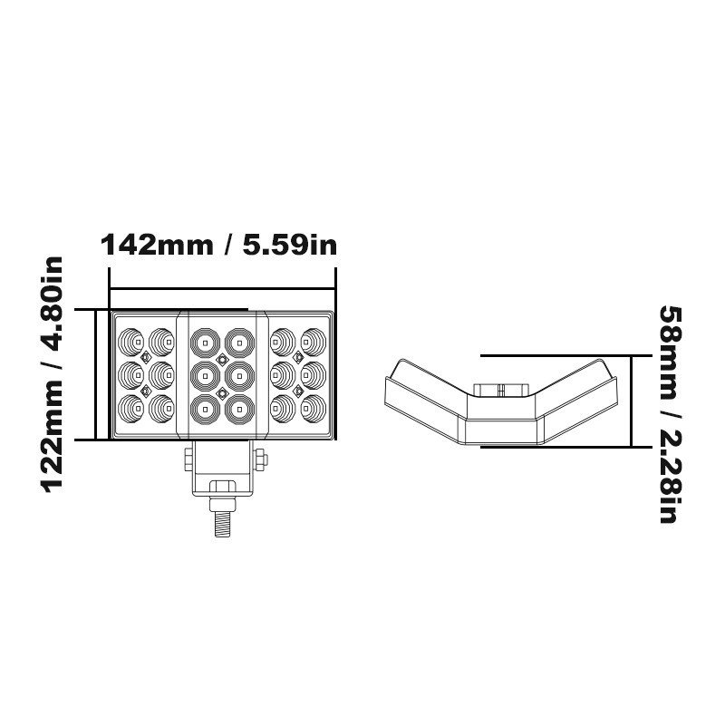 Ívelt kialakitású 18Led-es Munkalámpa, EPISTAR LED-el, 54W 12/24V 145x122x60mm Terítő Fény