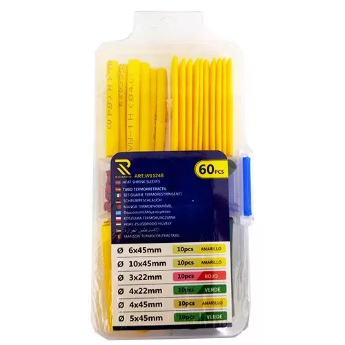A gondosan összeválogatott méretű komplett szett 60 db zsugorcsövet tartalmaz.